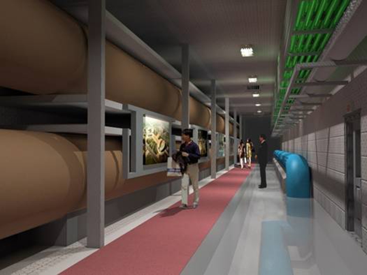 結(jié)構(gòu)復(fù)雜,設(shè)置三處管廊交叉和一處參觀通道,各種進(jìn)出線口。