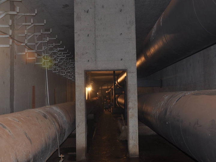 容納的管線較多,包括2DN1000熱力管道、 1DN1000給水管道、1DN900給水管道、弱電管道、220KV、110KV、10KV電力管道及預(yù)留的中水管道、空調(diào)管、直飲水管道等。